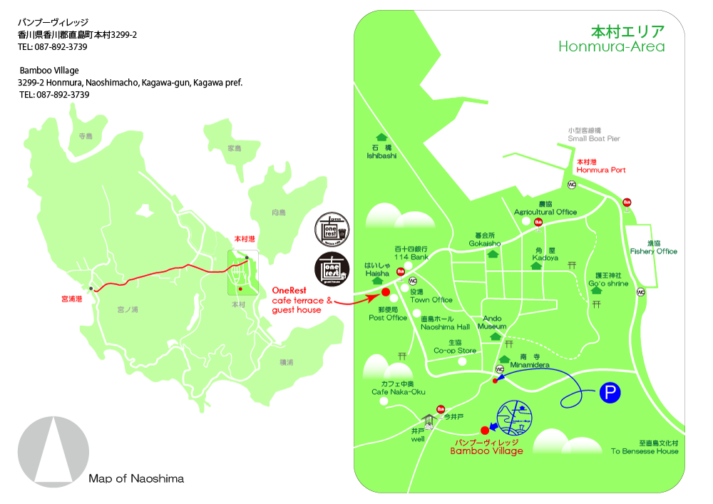 赤い部分をクリックすると、直島本村地区の地図が現れます